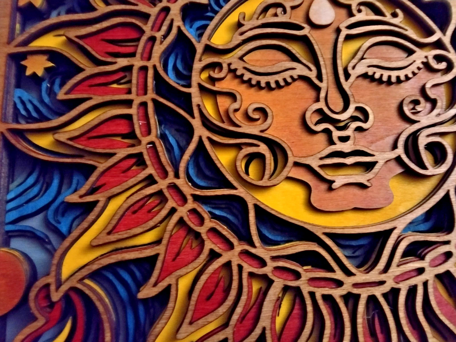 Three Eyed Sun 6 Layer Laser Wood ArtThree Eyed Sun 6 Layer Laser Wood Art