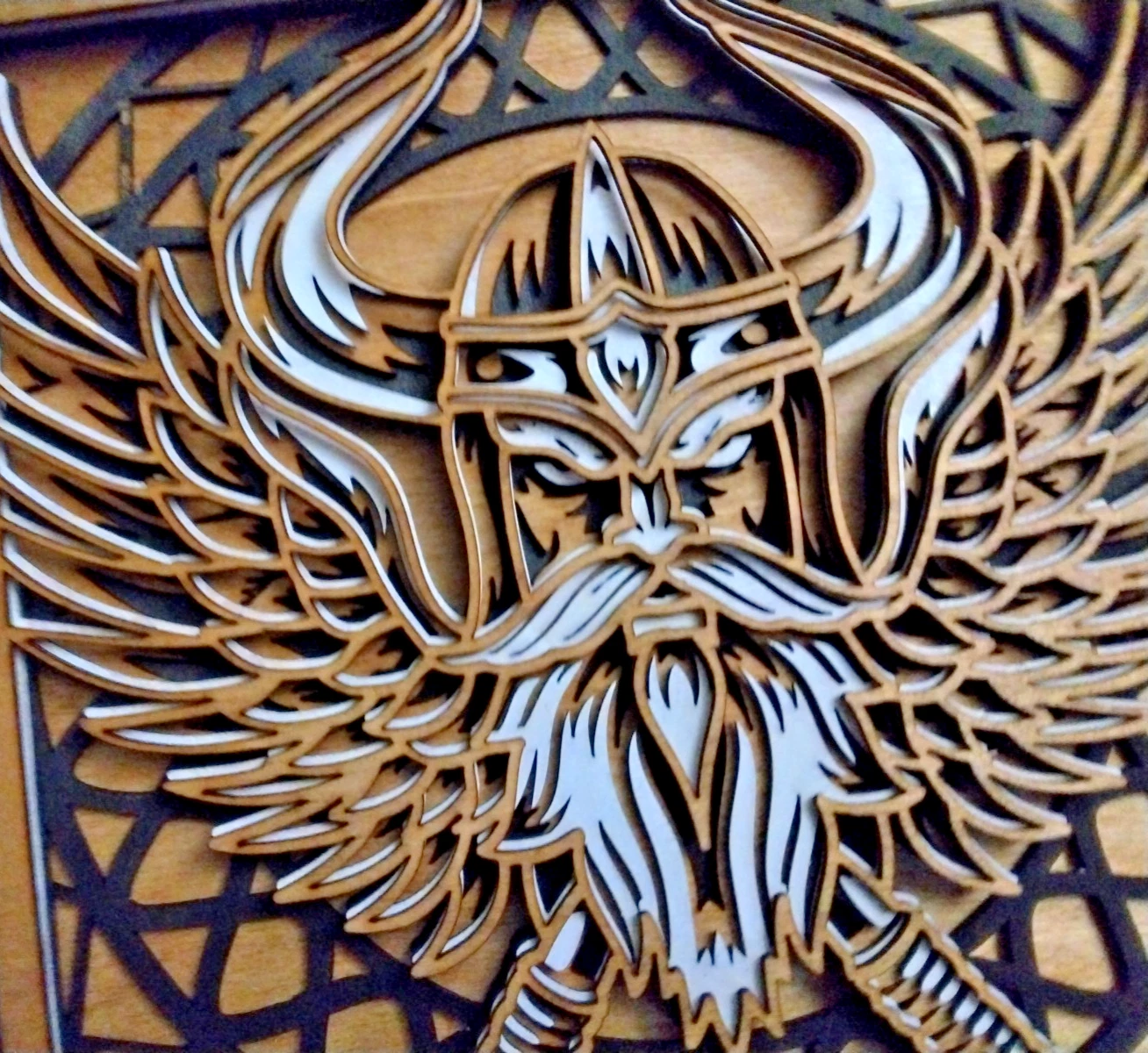 This is a design I bought from another artist on Etsy. I added an additional layer to the art piece to avoid staining one piece of wood two separate colors and every piece could just be stained its own color. The additional layer also added to the thickness of the art piece in general now making it a 1/2 an inch. This actual art piece has been sold but do not worry we have another listed on eBay if interested.