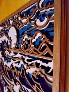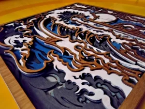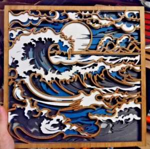 This is a design I bought from another artist on Etsy. I added an additional layer to the art piece to avoid staining one piece of wood two separate colors